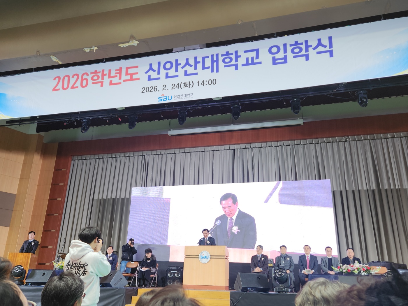 2026학년도 제 32회 신안산대학교 입학식 본식이 본교 체육관 2층에서 진행하였습니다.