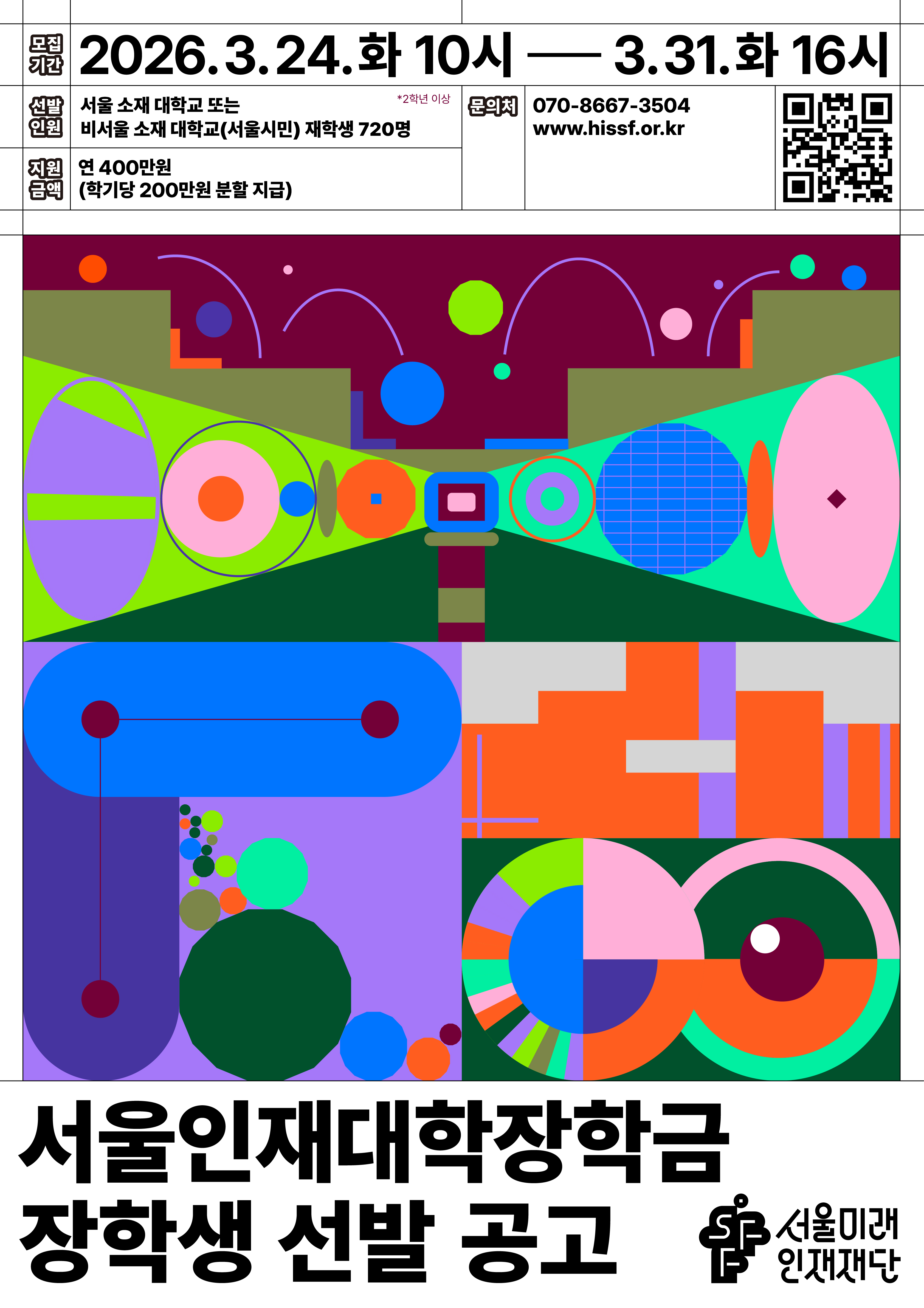 서울장학재단은 서울의 미래를 이끌어갈 대학생들이 경제적 부담 없이 진로를 설계하고 학업에 전념할 수 있도록 2026년 상반기