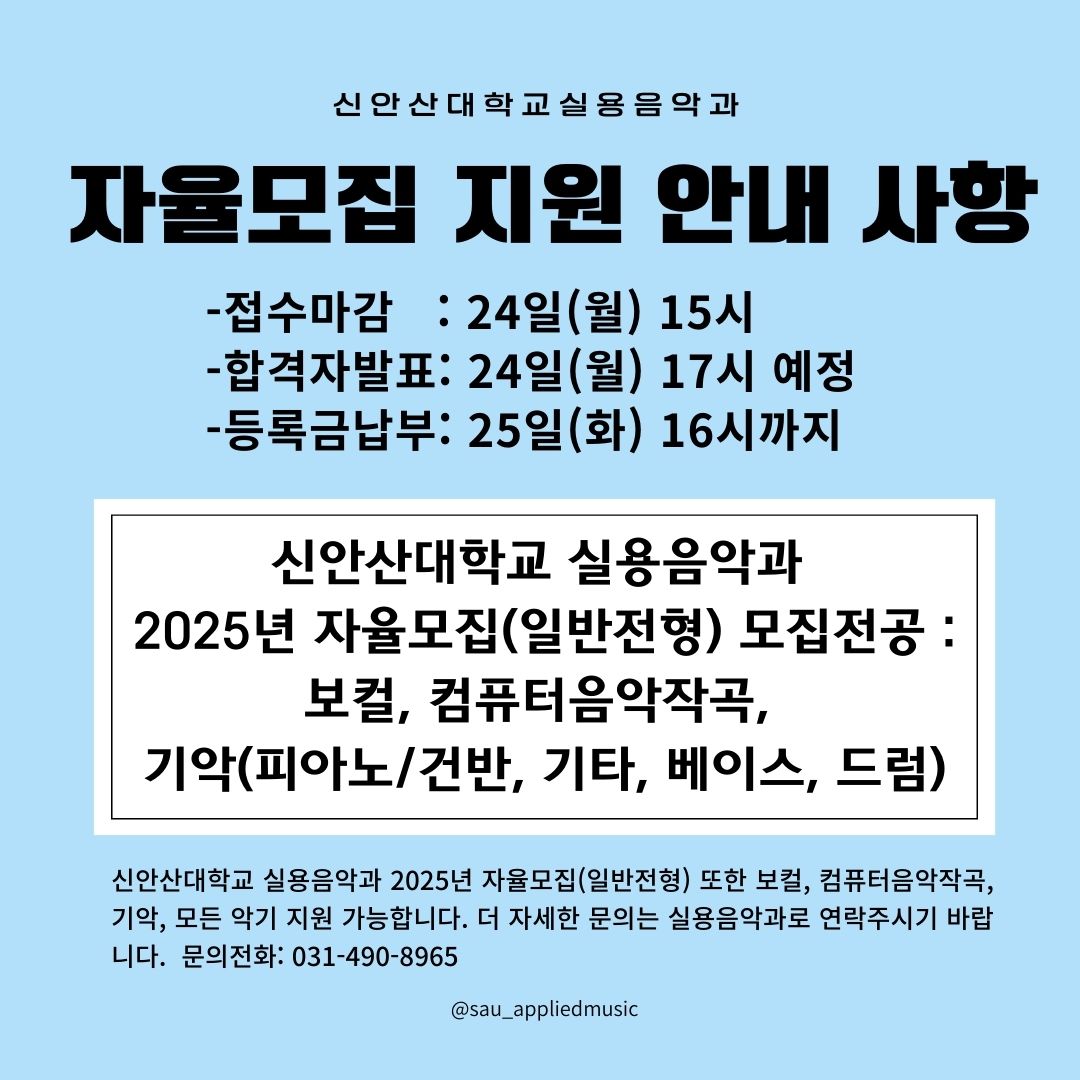 2025학년도 신안산대학교 실용음악과 자율모집(일반전형)_25.02.24. 15시까지