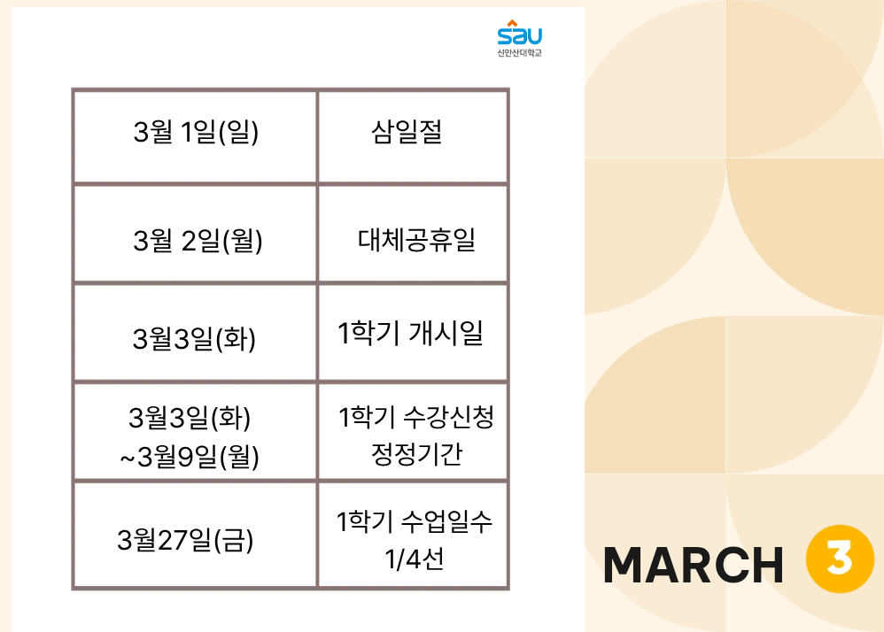3월 학사일정입니다.