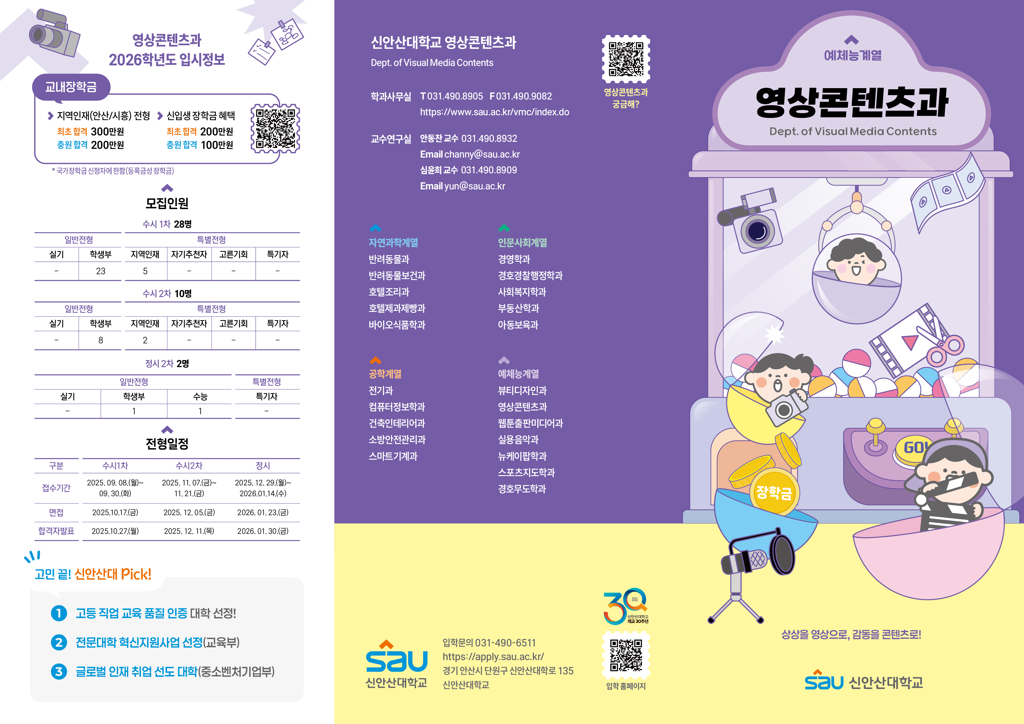 2026학년도 영상콘텐츠과 입시정보를 이미지로 올려드리오니 참고하셔서 많은 홍보 부탁드립니다.